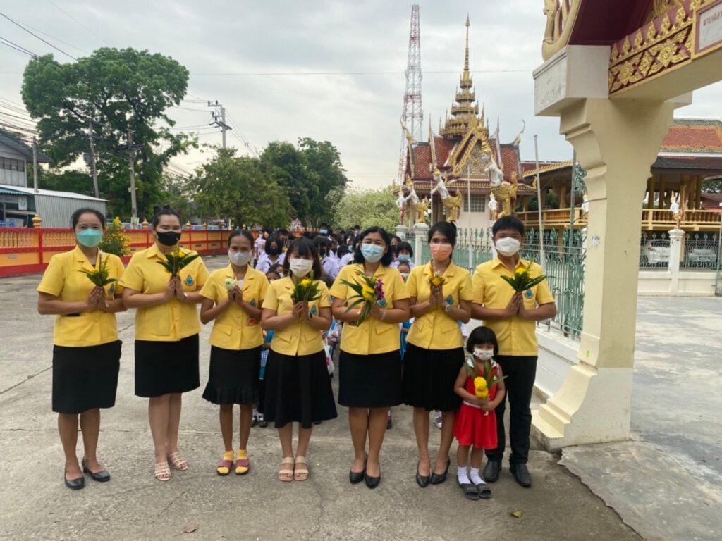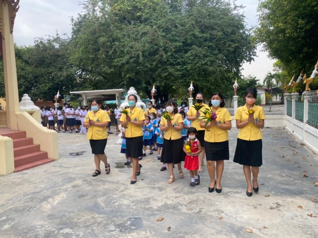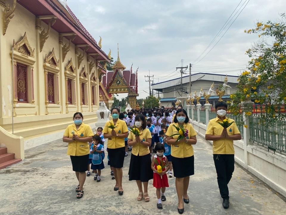 15 กุมภาพันธ์ 2565 คณะครู นำนักเรียนเข้าวัด ฟังธรรม เวียนเทียนรอบอุโบสถ และถวายดอกไม้ธูปเทียนเนื่องในวันมาฆบูชา