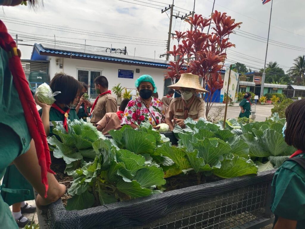 17 กุมภาพันธ์ 2565 นักเรียนกิจกรรมเกษตรพอเพียงเก็บเกี่ยวผลผลิตกะหล่ำปลีปลอดสารพิษเพื่อจำหน่ายให้กับ ครู ผู้ปกครอง และนักเรียนที่สนใจ