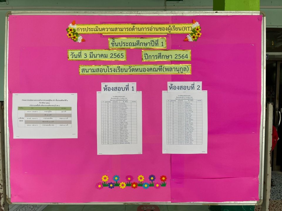 3 มีนาคม 2565 โรงเรียนวัดหนองคณฑี(พลานุกูล)​ได้จัดการทดสอบเพื่อประเมินความสามารถในการอ่าน (Reading Test : RT) ของนักเรียนระดับชั้นประถมศึกษาปีที่ 1 ประจำปีการศึกษา 2564 โดยมีนายสหพร สกนธ์​กำแหง ศึกษา​นิเทศ​ก์ สำนักงานเขตพื้นที่การศึกษา​ประถมศึกษา​สระบุรี​ เขต 1 ตรวจเยี่ยมสนามสอบ พร้อมทั้งให้ข้อเสนอแนะที่เป็นประโยชน์​ในการสอบครั้งนี้ ทางโรงเรียน​ขอขอบพระคุณ​เป็นอย่างสูง