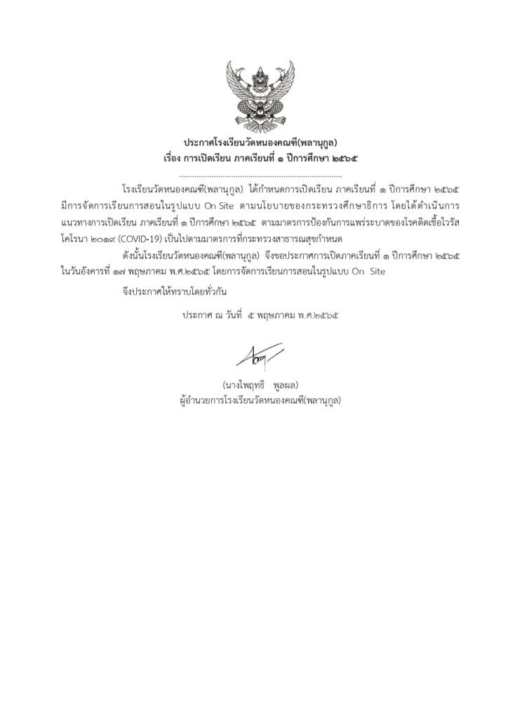 ประกาศ ประกาศโรงเรียนวัดหนองคณฑี(พลานุกูล) เรื่อง การเปิดเรียน ภาคเรียนที่ 1 ปีการศึกษา 2565 ในวันอังคารที่ 17 พฤษภาคม 2565 โดยจัดการเรียนการสอนในรูปแบบ On site เรียนเต็มรูปแบบที่โรงเรียน 7 พฤษภาคม 20227 พฤษภาคม 2022 Manop Boonpeng 0 Comments